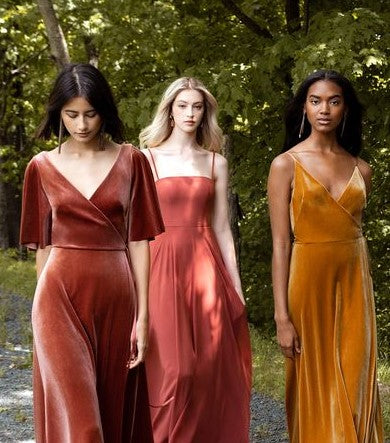 Fall is fast approaching and we’re breaking down one of our favorite color palettes for bridesmaids! While Jewel tones have always been a go-to for this time of year, warm tones such as marigold and shades of red are so on trend this autumn. Designer Jenny Yoo has gorgeous shades of copper, rose, and berry that are great for mixing and matching! Here are a few of our favorites in styles that are flattering for all: