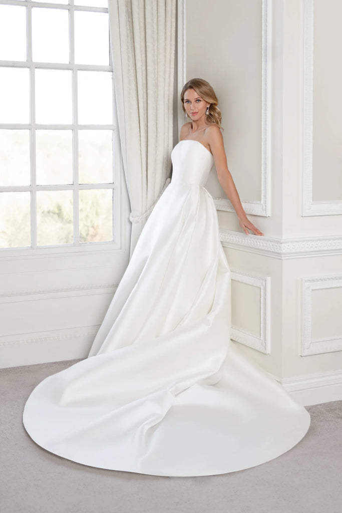 Style: Tribute- From the Celebration Collection, strapless Italian mikado A-line gown.